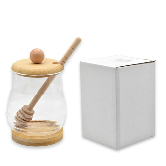 Recipiente de vidrio y madera para miel 10.5x7cm